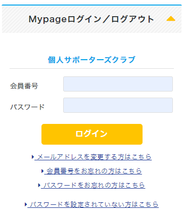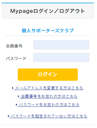 会員番号がわからない場合は、[会員番号がわからない方はこちら]より、登録しているメールアドレスを入力することにより会員番号が書かれているメールが届きます。