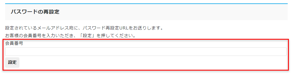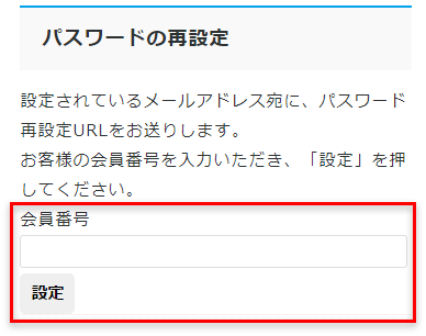 10桁の会員番号を入力してください。登録してあるメールアドレス宛にメールが届きます。
