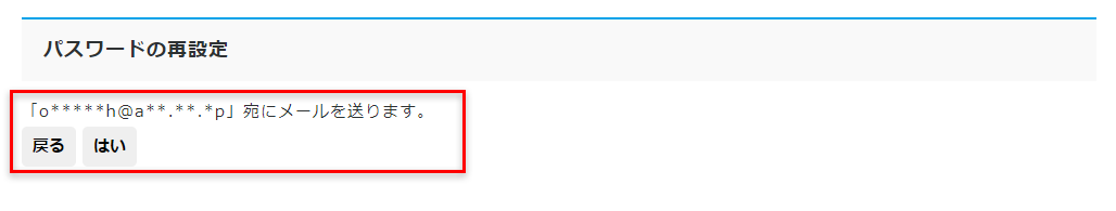 メールアドレスが一部伏字で表示されます。こちらのメールアドレスにメールが届きます。